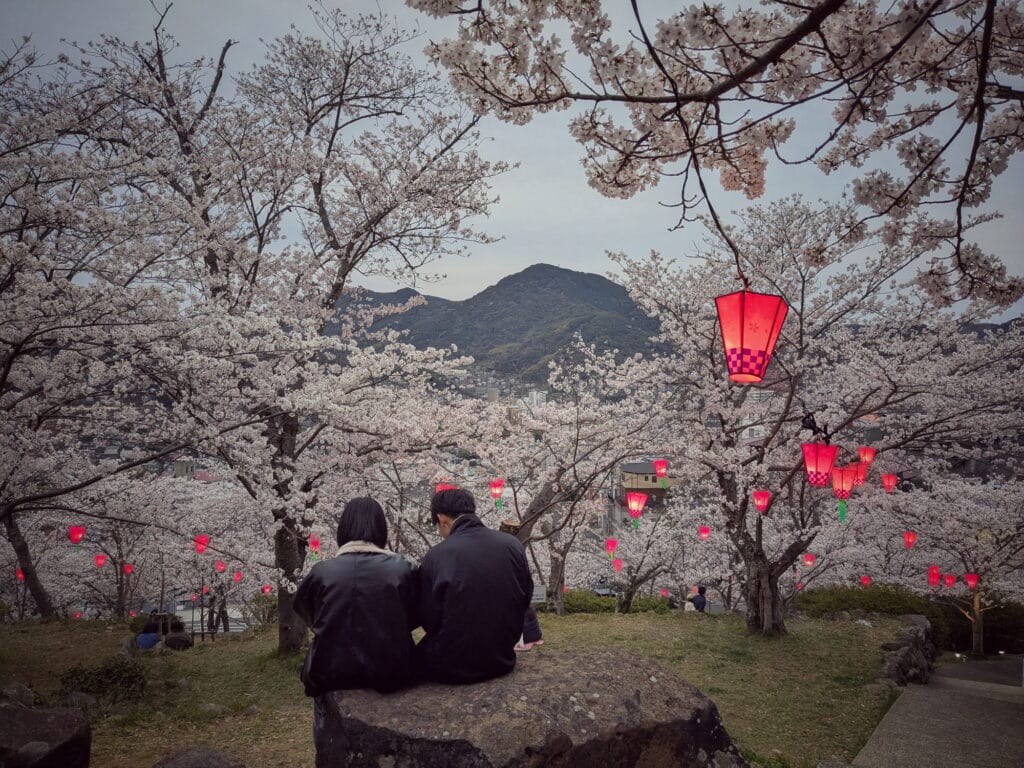 The picnic plans started to sound a lot less cozy and more miserable. Still, we gave it a shot on a chilly Monday afternoon in Nagasaki, wrapped in thick down jackets, beer in hand and determined to embrace the tradition. As we shivered under the trees, we finally started to get it; Hanami wasn’t just about perfect weather. Despite the cold, people gathered beneath the lanterns, laughing, eating, and totally in the moment. A few food stalls added to the festive atmosphere, and suddenly, the chill didn’t seem so bad after all (or was it the beers?).