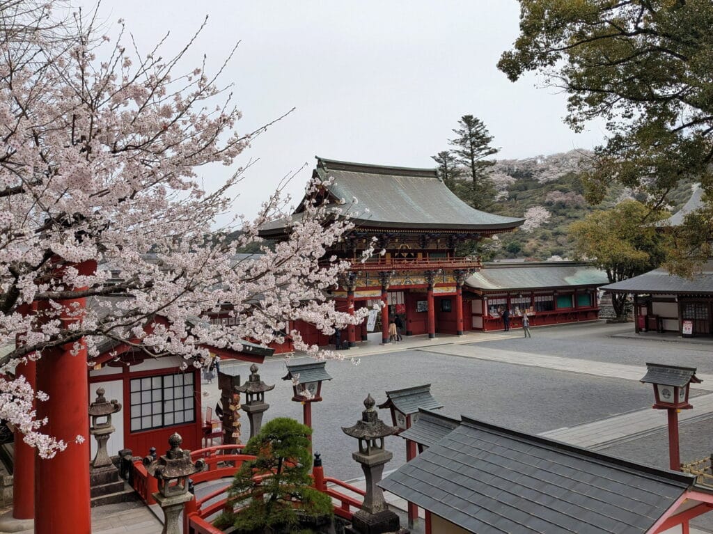Sakura, or cherry blossoms, are a big deal in Japan. They attract countless people and tourists from all over the world year after year. At first, we didn’t quite understand the hype around the sakura season; after all, flowers bloom in spring everywhere! Why is it so special in Japan ?! Already early in January news outlets and social media were all discussing the cherry blossom forecast (sort of like a rain radar map), while supermarkets had fully switched to sakura mode with every product branded with cherry blossoms on it. It made us laugh a bit, so much fuss over some flowering trees! And while the hysteria still seems a bit odd, it’s hard not to indulge and embrace the sakura traditions. So, now that we’re living in Japan, we might as well try all the sakura branded products (or at least as many as possible) and visit some prime spots in Kyushu while they’re in full bloom.