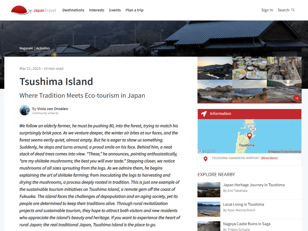 Tsushima Island – Where Tradition Meets Eco-tourism in Japan; published at japantravel.com